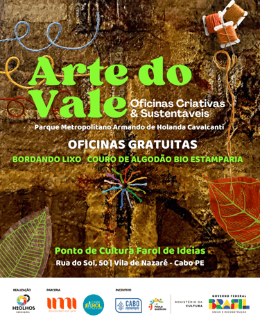 Arte do Vale – Oficinas Criativas e Sustentáveis é um projeto de ações artísticas com três oficinas criativas de arte sustentável para moradoras e moradores da comunidade do Vale da Lua, localizada no Parque Metropolitano Armando de Holanda Cavalcante, no litoral cabense.