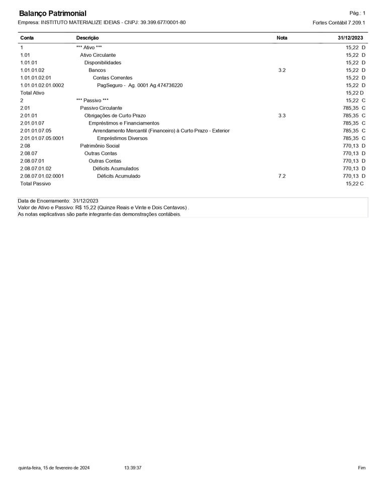 Instituto Materialize Ideias CNPJ: 39.399.677/0001-80